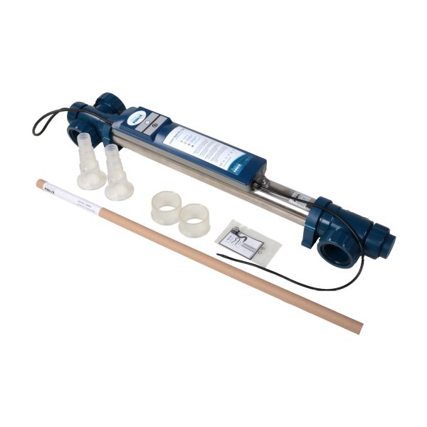 The unit is equipped with a T5 lamp and electronic ballast for optimum operation (9000 hours). Average lifespan of the ballast is ± 5 years. The T5 lamp provides a radiation value of 25,000 microwatts. Working pressure maximum 2 bar. Keeps bacteria and algae under control