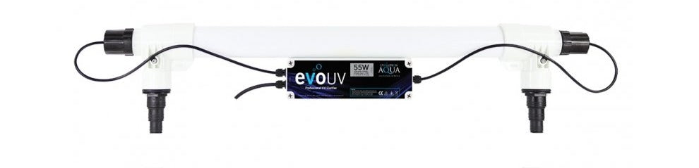 The Evolution Aqua evoUV deliver a more efficient and more economical performance than before thanks to their new design. The new range includes completely redesigned 30 Watt and 55 Watt models and a 110 UV, a 15 Watt and 25 Watt model perfect for use on the smaller garden pond, along with a 75 Watt version. Our new range of evoUV pond clarifiers have been manufactured to deliver optimum performance at all times. evoUVs have been designed to clear green water, which is caused by single celled green algae, and prevent it from returning.