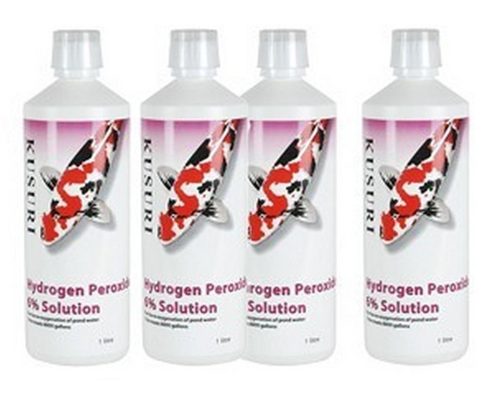 Kusuri Hydrogen Peroxide 6% Solution is used for the re-oxygenation of pond water after a treatment of   Kusuri Potassium Permanganate.Kusuri Hydrogen Peroxide 6% Solution can be used to increase the oxygen levels and remove the discolouration from pond water after a course of Kusuri Potassium Permanganate has oxidized from pink to brown.Kusuri Hydrogen Peroxide 6%Solution can also be very useful when applied to pond water prior to the removal of sludge and detritus. The hydrogen peroxide will neutralize hydrogen sulphide realised from the sludge and detritus being removed.